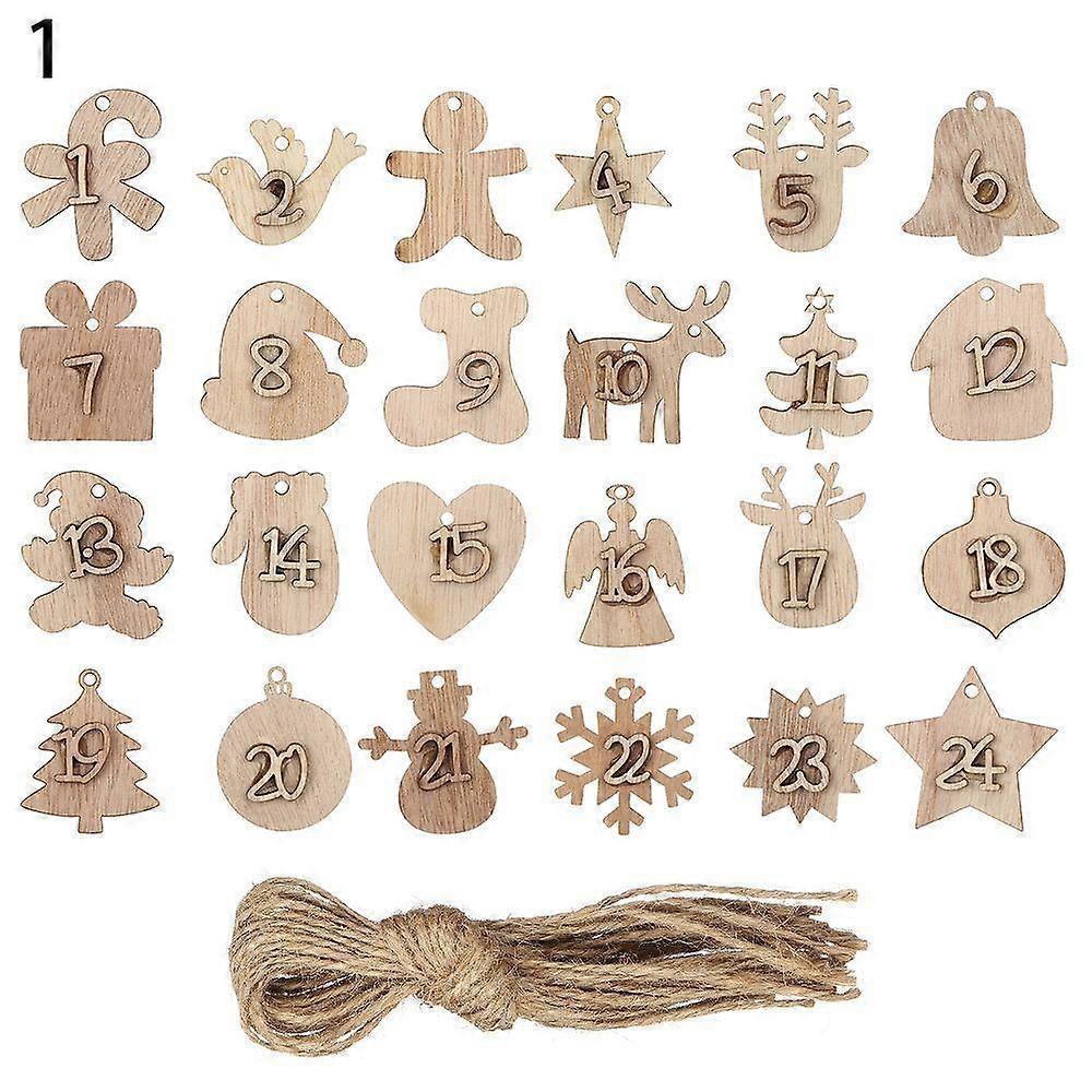Decor Ornament Xmas Wooden Pendant Christmas Advent Calendar Countdown Hanging Tags Number Label
