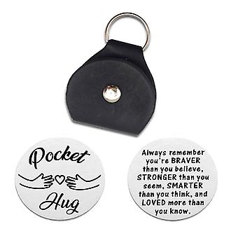 Stainless Steel Pocket Hug Token with PU Leather Keychain Inspirational Gift