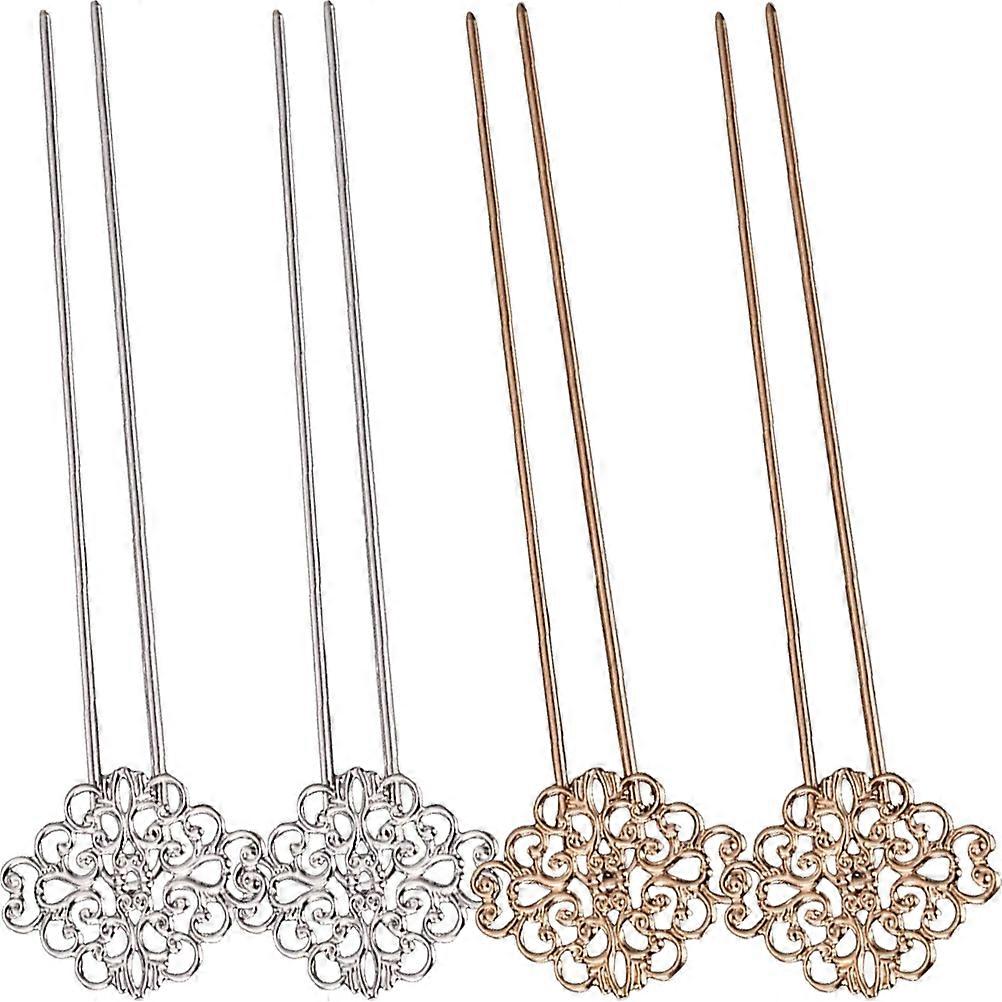 U Shaped Hair Sticks Chinese Style Decorative Hair Clips For Women Night Out Wedding Party 5.50X1.18X0.12in 4Pcs