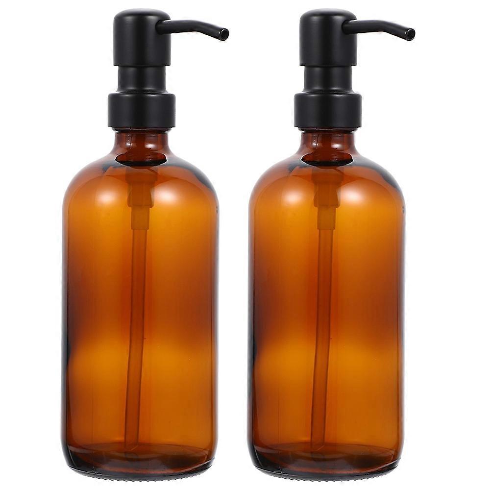 Lotion Dispenser For Bathroom Glass Soap Dispenser Bottle Refillable Hand Soap Storage Brown 21x7x7cm 500ml 2Pack