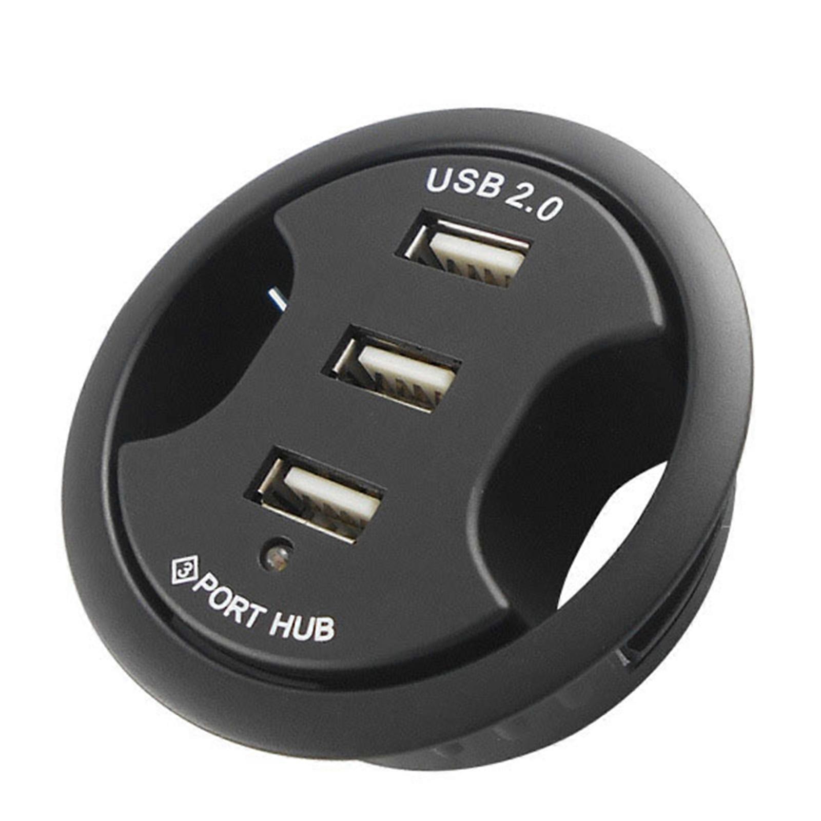 3/5-Port USB 2.0 Hub Mounting In-Desk Multi USB 2.0 Ports with 3.5mm Mic Earphone Hole Multi Splitter for Mouse Keyboard