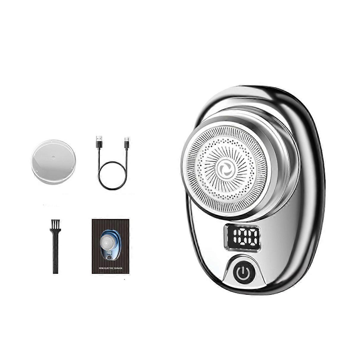 Cross-border mini electric shaver, portable household men's razor, portable travel washable digital display beard shaver - silver [upgraded 28 leaves/