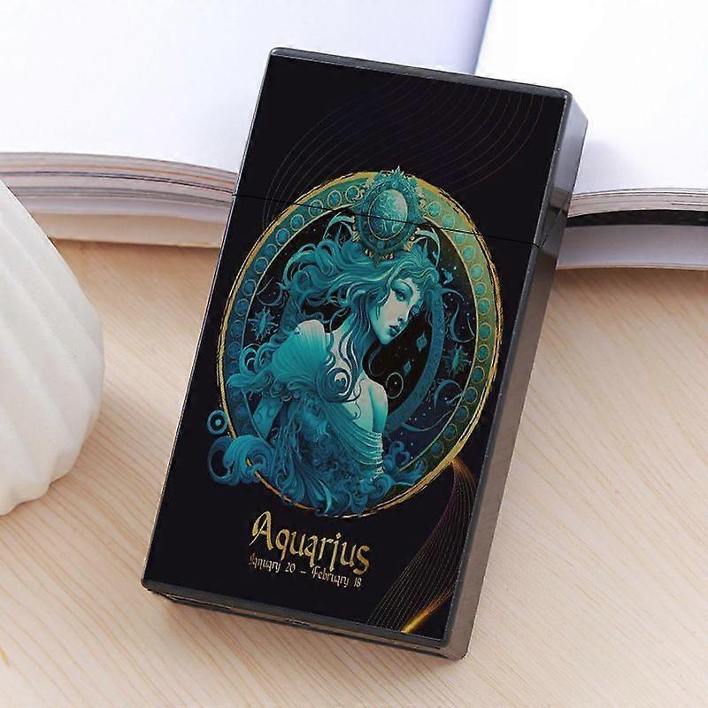 Cross-Border Twelve Constellation Cigarette Case Women's Fine Counts Boxes Zodiac Cigarette Storage Box Engraved Logo Automatic Bounce Cover Cigarette