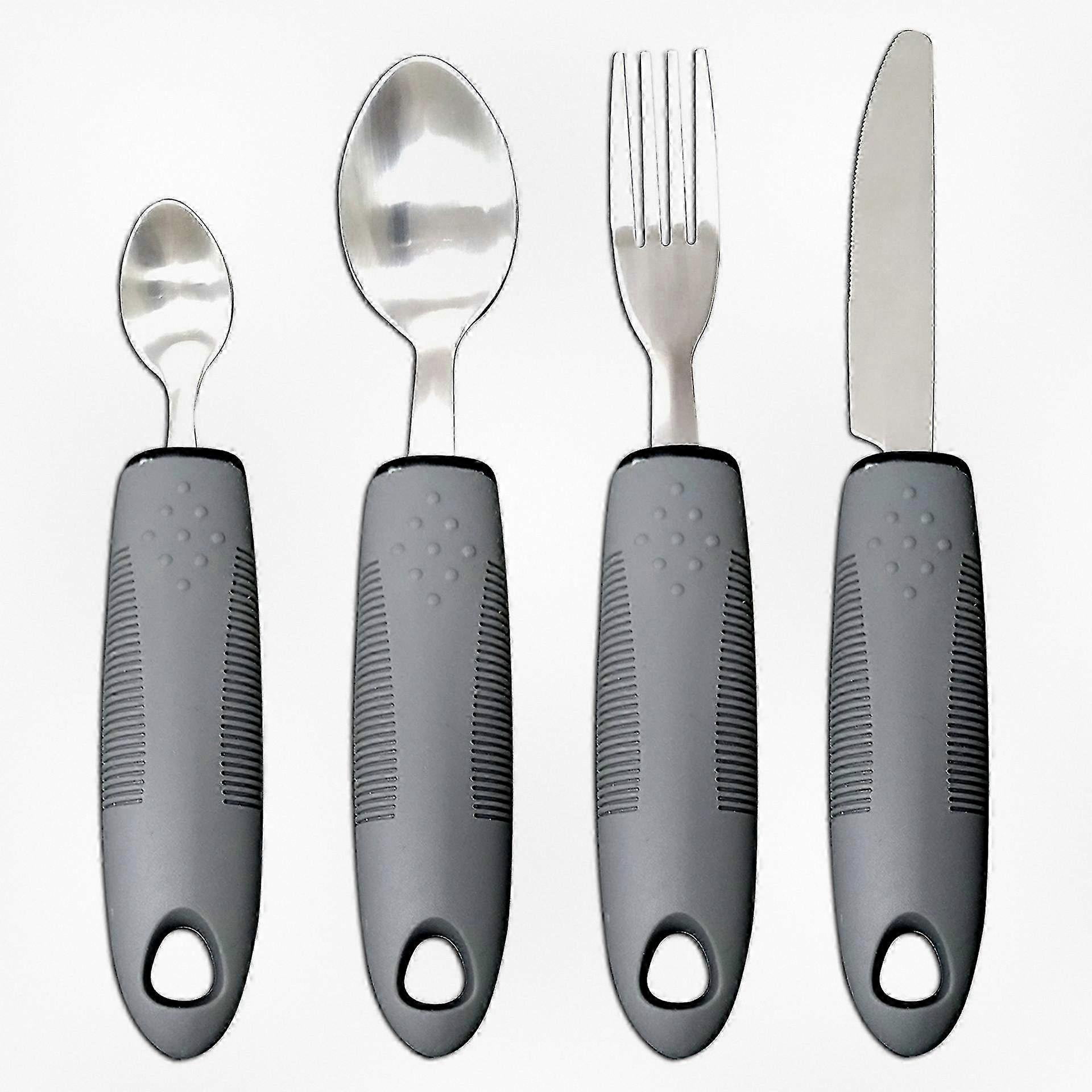 Eating Aids for Disability - Ideal Cutlery Set for the Elderly, Disabled Individuals, or Those with Tremors and Unsteady Hands - (grey (1x S