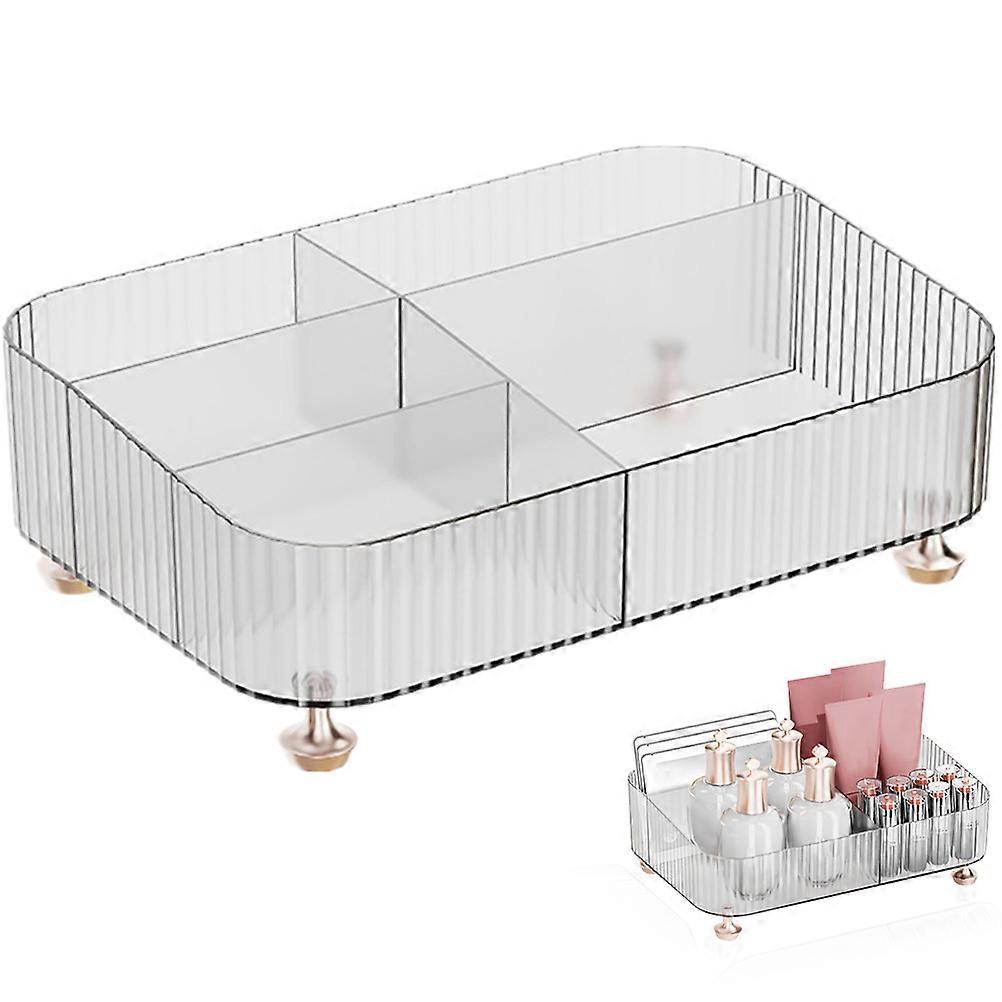 Transparent PET Makeup Organizer Tray with 5 Compartments for Storage Use on Dresser Desktop Bathroom