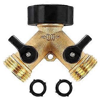 Garden Hose Splitter 2 Way Heavy Duty Brass Connector Tap Splitter, Y Splitter 2 Valves with 2 Extra