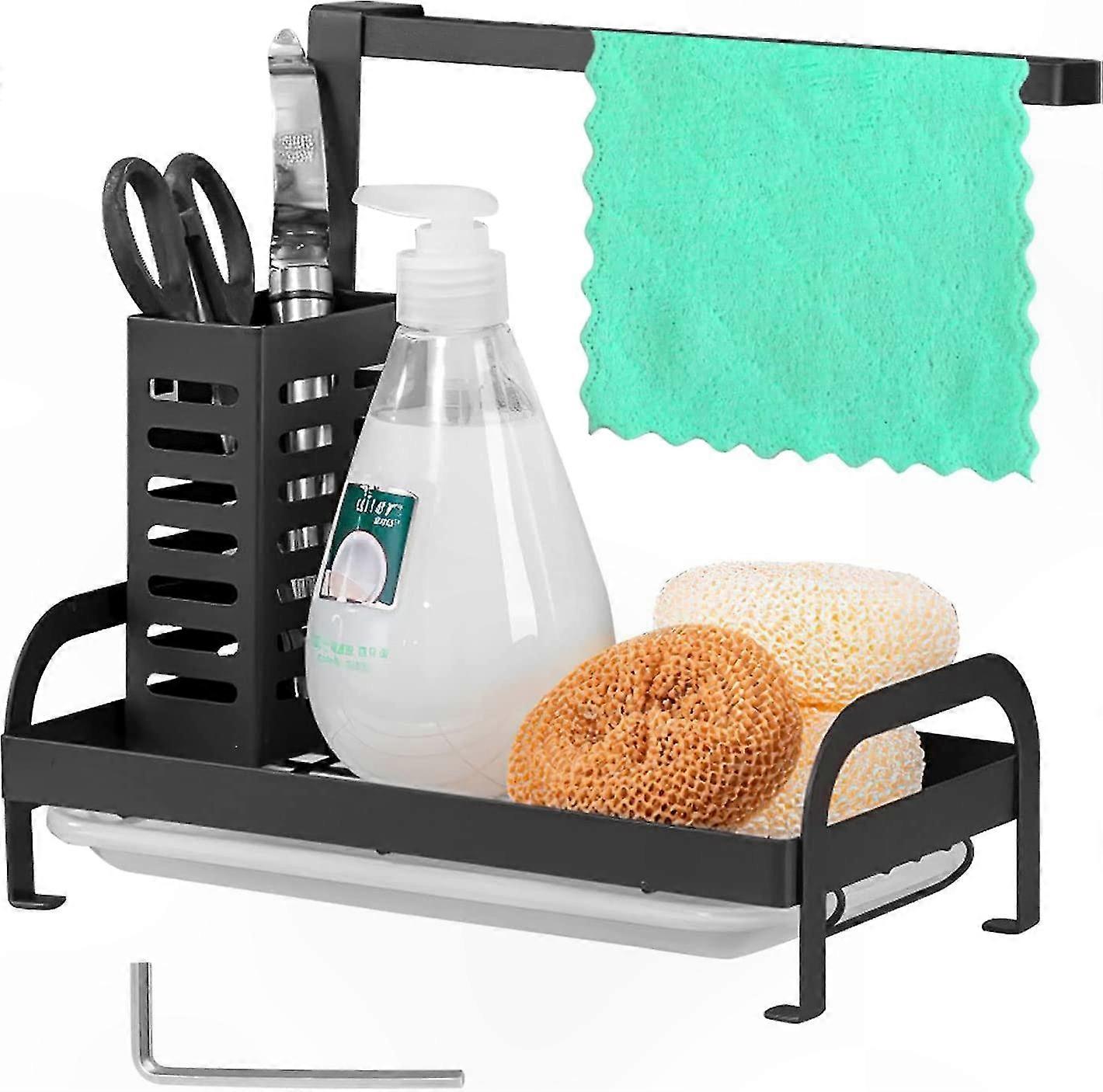 Sink Storage Organizer for Detergent, Sponge, and Utensils with Drain Tray and Dish Cloth, Black