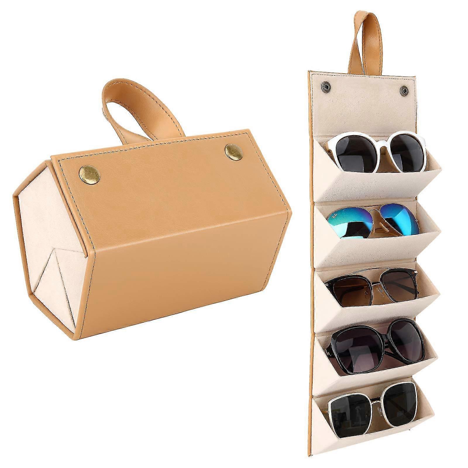 Sunglasses Organizer With 5 Slots, Travel Glasses Case Storage Portable Sunglasses Storage Case Bag Foldable Eyeglasses Holder Box Eyewear Display Con