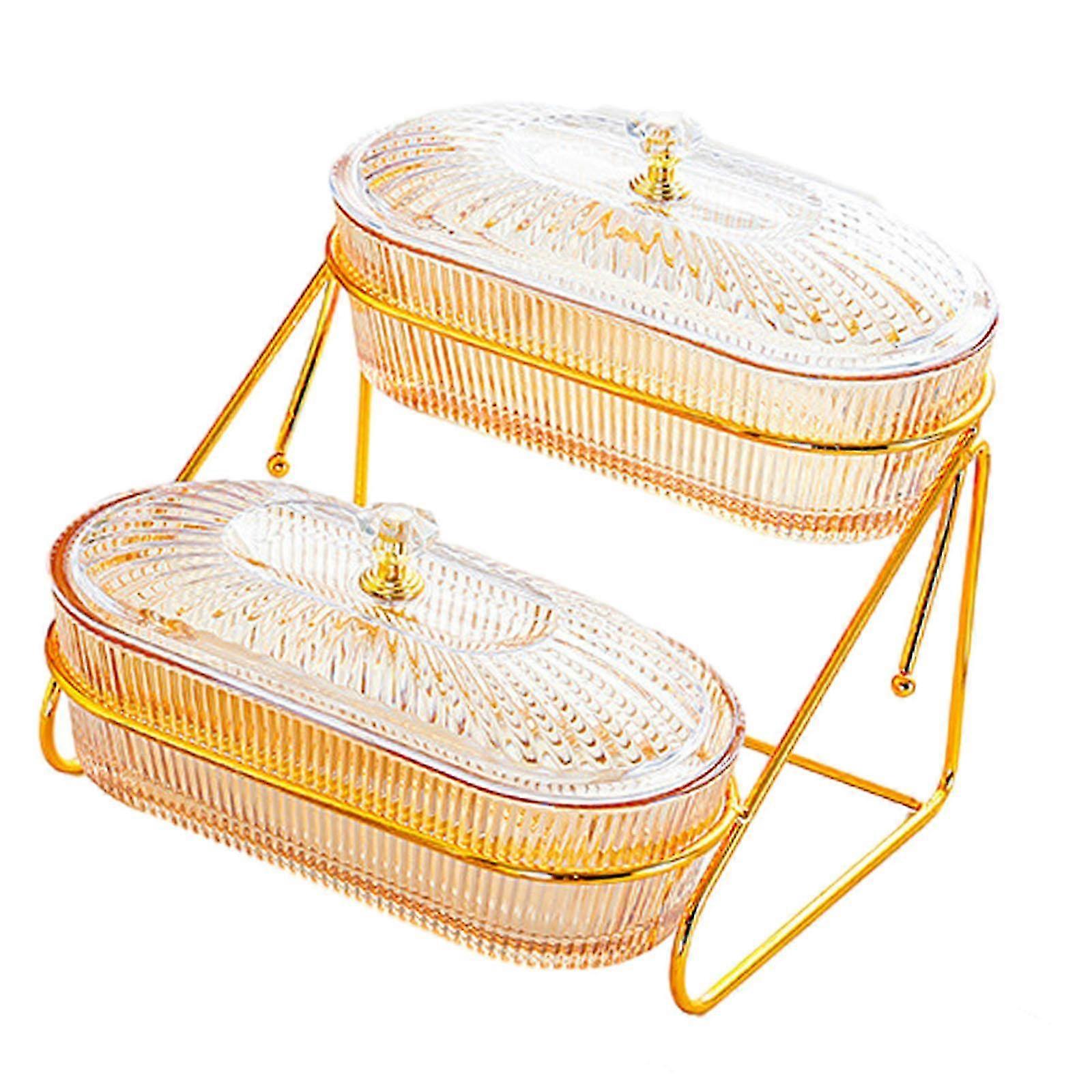 2-Tier Serving Tray Organizer with Lid for Nuts, Dried Fruits, Party Kitchen Snack Storage