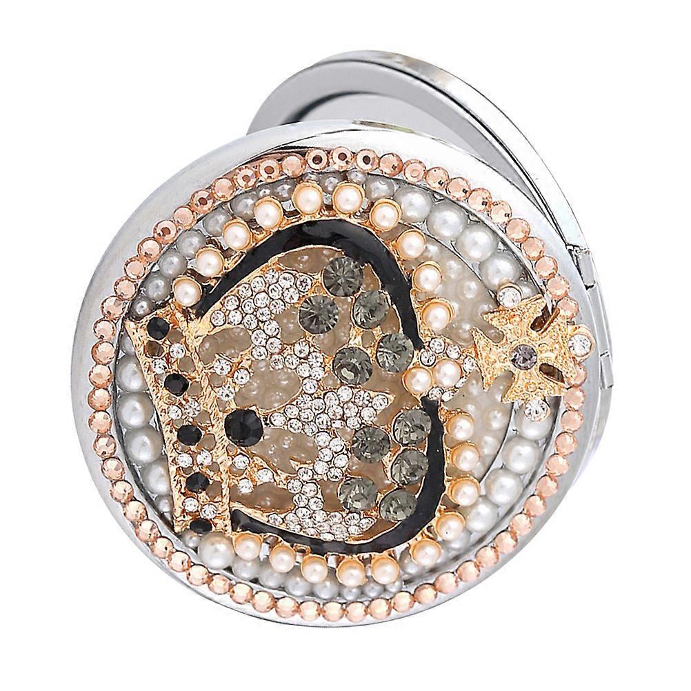 Double Sided Folding Mirror Rhinestone Crown for Makeup 2Pcs