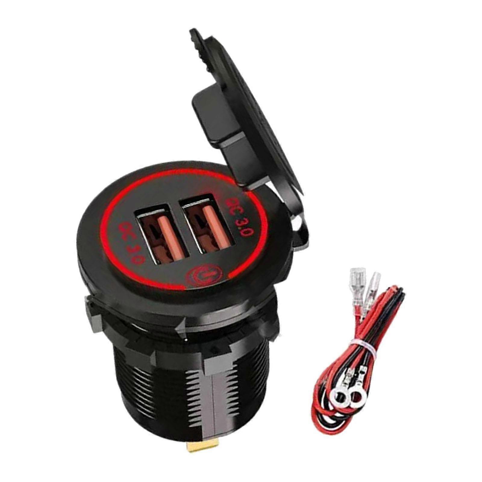 Dual USB Car Charger Socket 12-24V USB Outlet for Car Marine Motorcycle Red Light