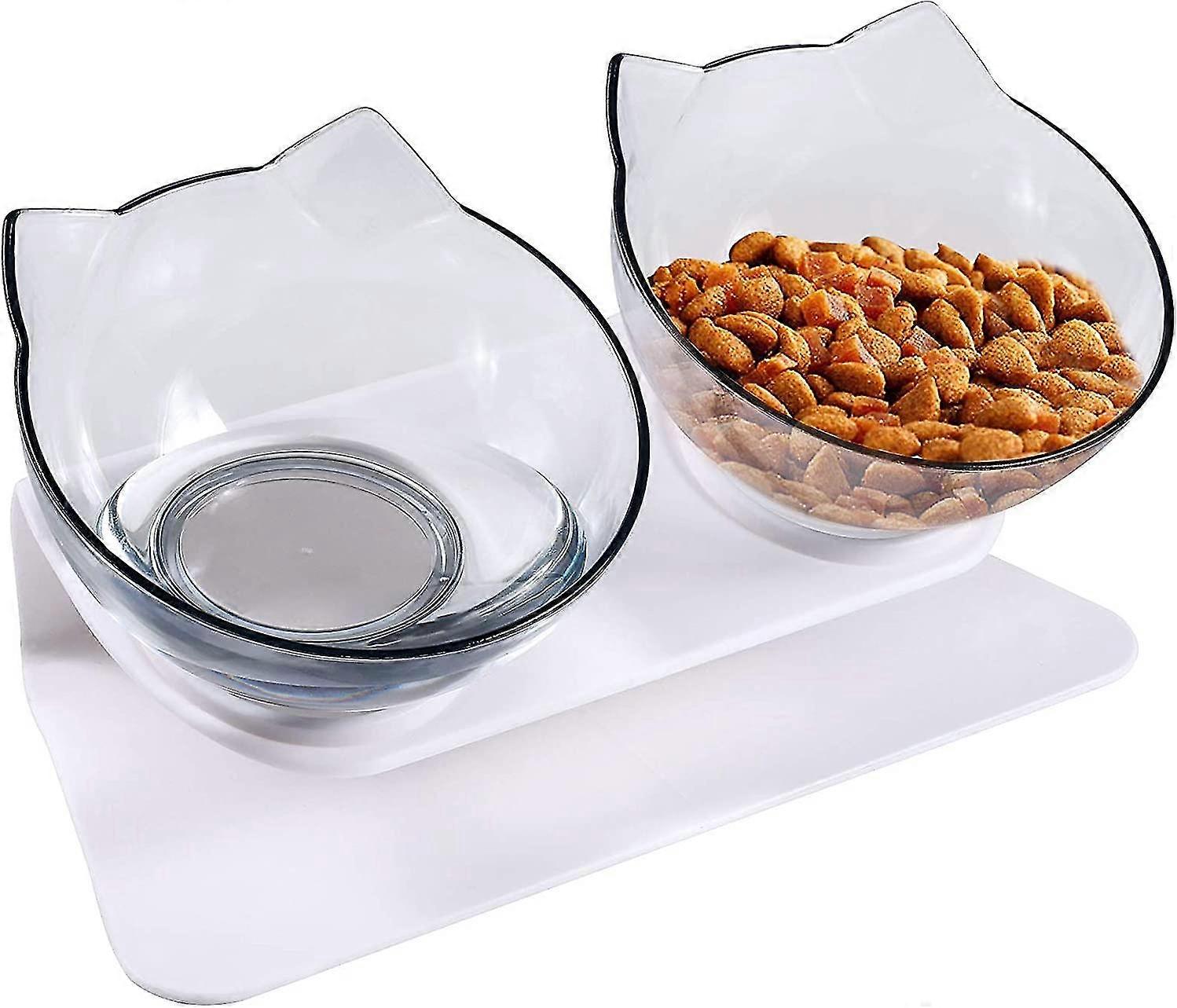 Double Cat Bowl, Cat Bowl, 15 Tilt Double Raised Cat Bowl, Double Bowl Pet Feeder With Raised Stand For Cats And Dogs (2 Clear)