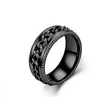 Double Layer Rotating Titanium Steel Couple Ring(8Mm Embossed Chain Ring - All Black)
