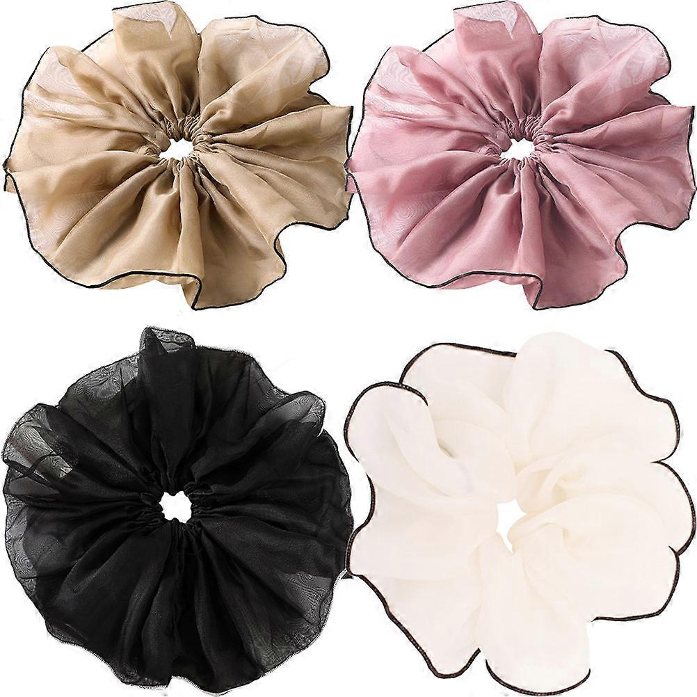 Mesh Hair Scrunchies Set of 4 Oversized Elastic Ponytail Holders Stretchy Hair Bands for , Khaki, Pink, White