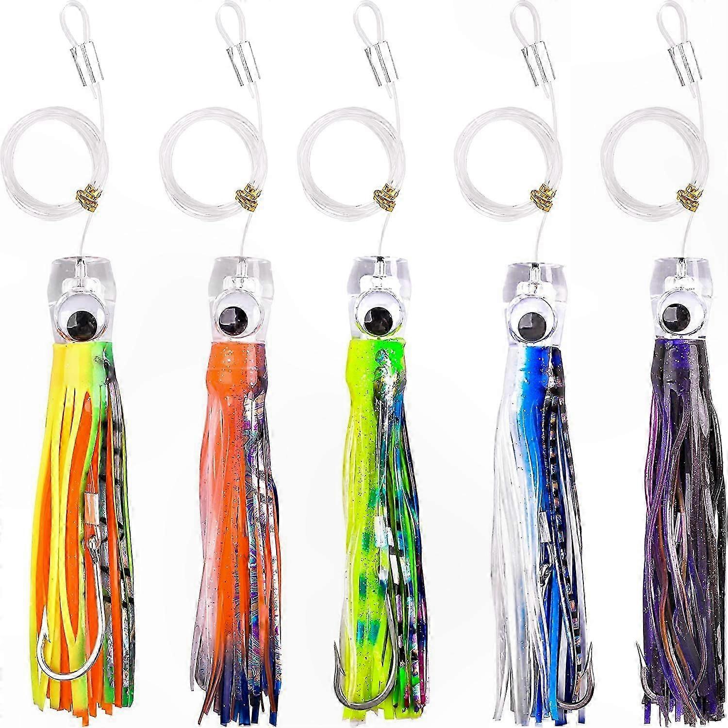 Saltwater Trolling Lures for Tuna Mahi Marlin Dolphin Dorado Wahoo - 6/9 inch Skirted Offshore Big Game Fishing Lures Deep Sea Squid Skirts Rig