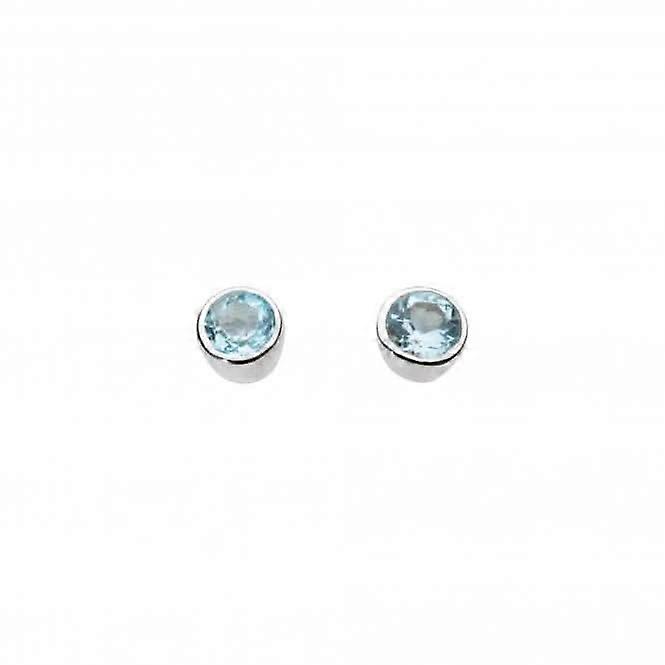 Dew Sterling Silver Small Round Blue Topaz Stud Earrings 3006BT