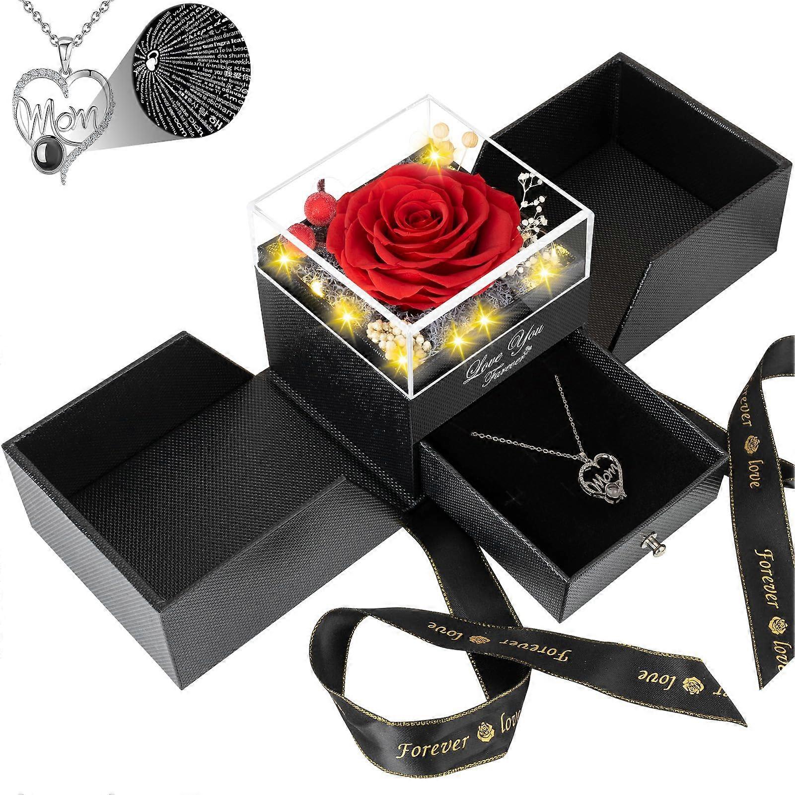 Gifts for Mom From Daughter And Son: Preserved Red Real Roses Necklace With I Love You In 100 Languages Mothers Day Gift