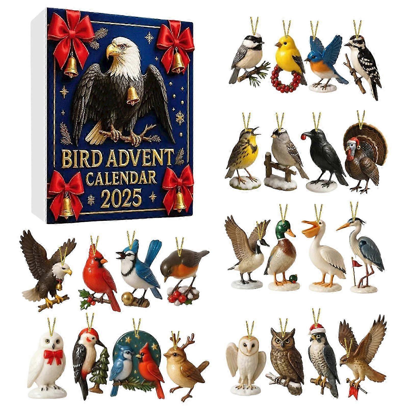 2025 Holiday Gift for Bird Lovers & Families Bird Advent Calendar Acrylic 2D Hanging Decorations Advent Countdown Calendar