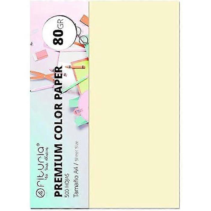 Pack of 500 sheets of cream-colored paper, size A4, 80g. Ideal for printing, cutting, and crafting. Compatible with laser printers, inkjet printers, and photocopiers. PEFC and ECF certified for superior quality.