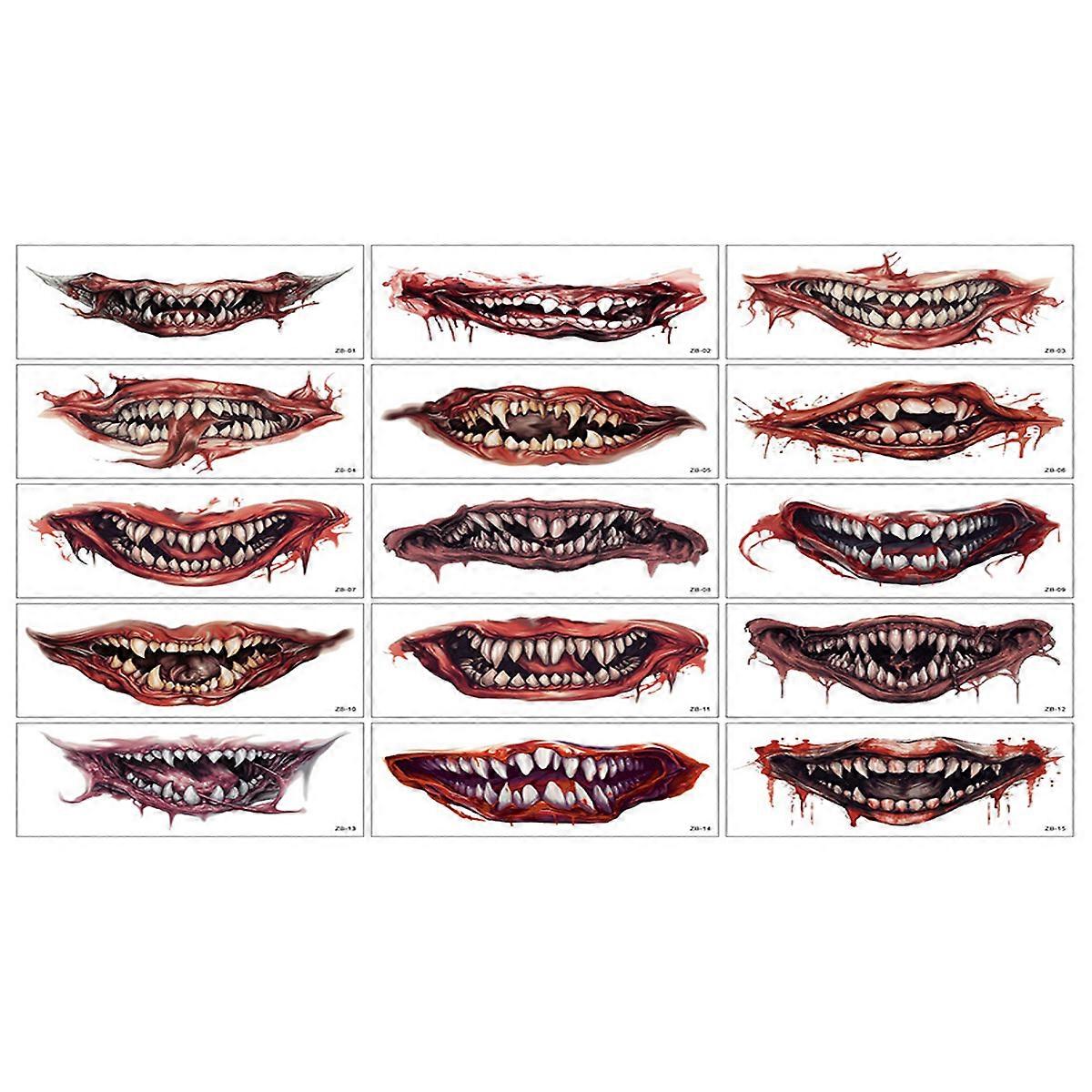 Stunning Halloween Costume Makeup, 15Pcs Set Of Temporary Face Tattoos, Day Of The Dead Sugar Skull Mouth, Water-Proof, Easy Apply Remove, Perfect