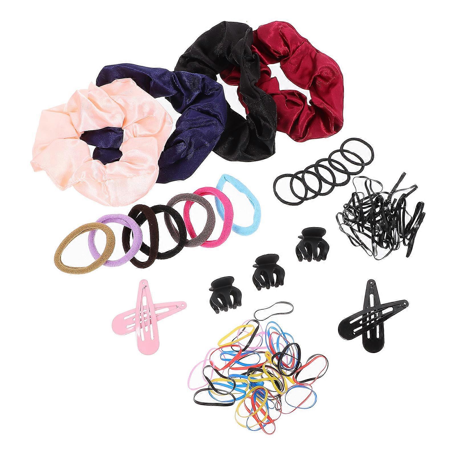 Elastic Ponytail Holder for Girls with Decorative Hair Clips and Assorted Color Hair Ties Cloth Plastic