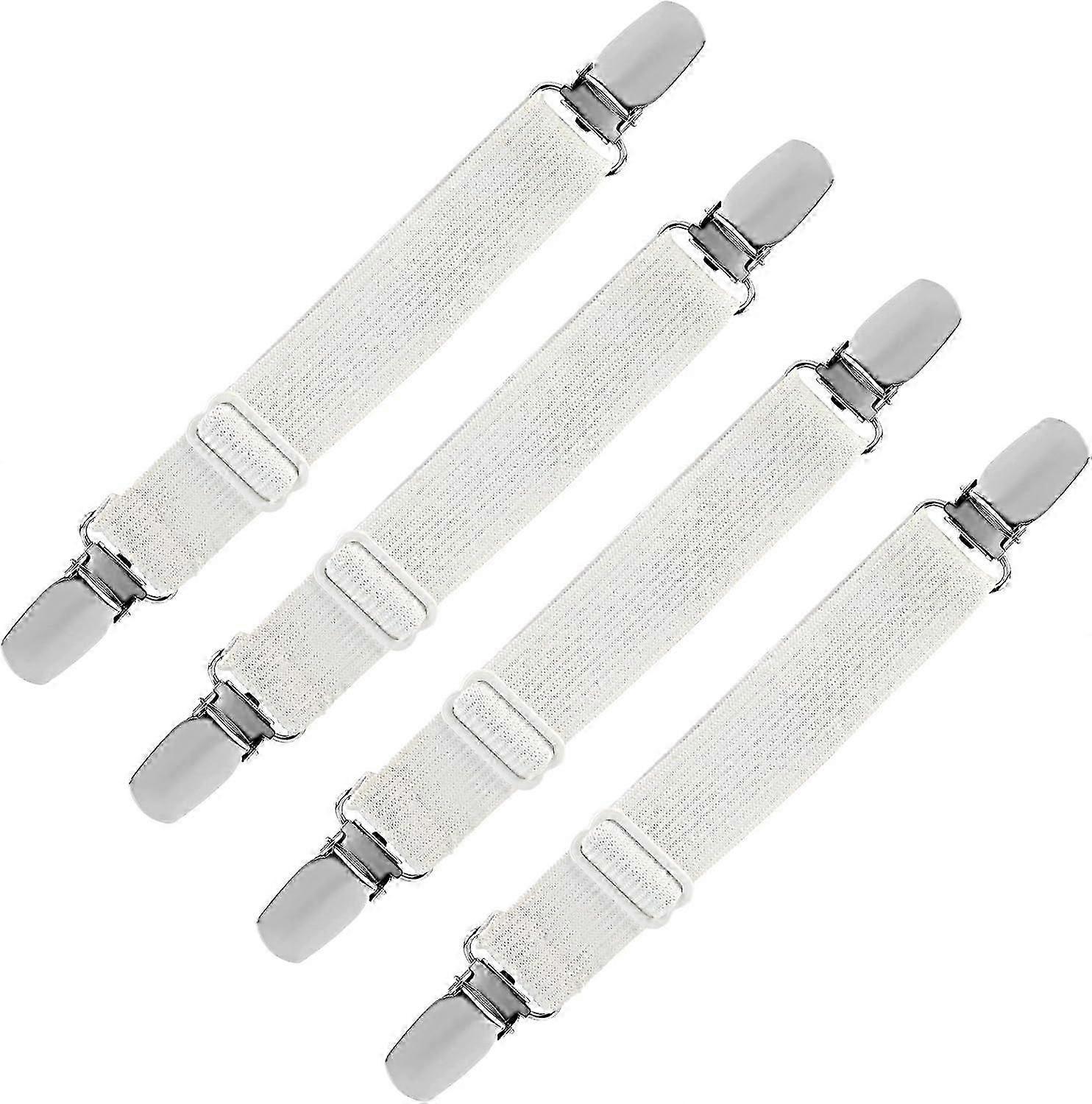 Elastic Fitted Sheet Tensioner, Adjustable Holding Strap Attachment for Bed Sheet, Sofa, Ironing Cover (White, Pack of 4 [jkw]