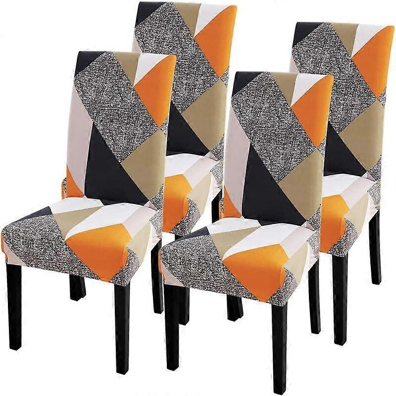 Elastic Chair Cover Printed Chair Cover Removable and Washable Bouquet Home Hotel Chair Cover (Yellow, 4 Pieces)