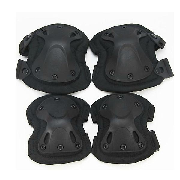 A Set of 4pcs Durable Outdoor Sports Tactical Adult Unisex Knee and Elbow Protective Pads Guards Protectors (Black)