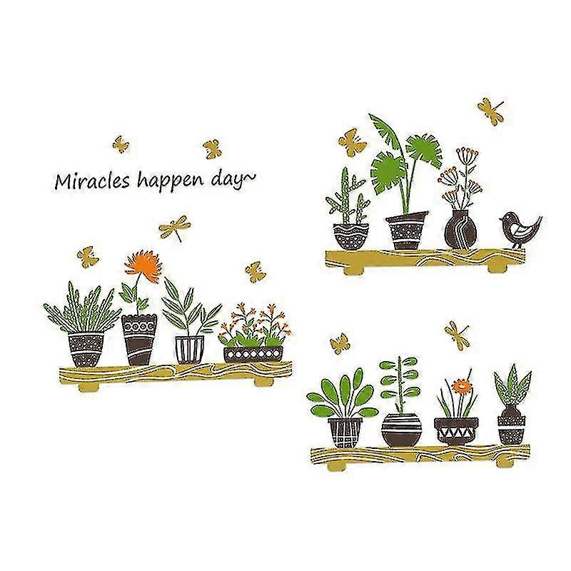 A Set Of Green Plant Wall Stickers, Potted Plants Wall Stickers, Removable Peel And Stick Art Murals For Bedroom, Living Room, Kitchen, Home Decor