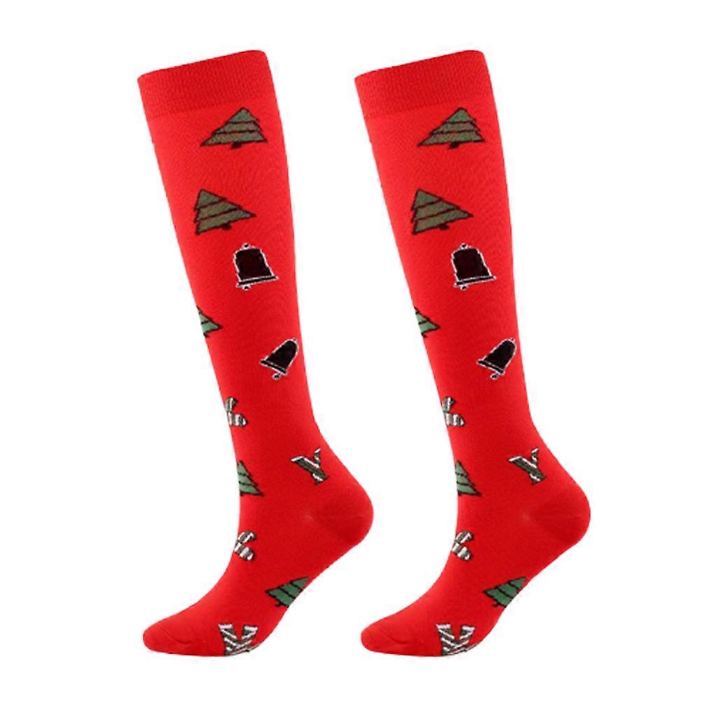 Adults Christmas Compression Socks Colorful Striped Elk Santa Xmas Tree Print Nursing Hiking Travel Relief Fatigue Knee High Stockings