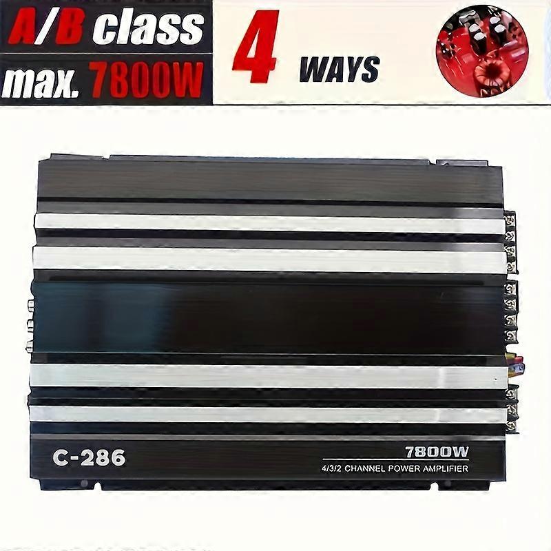 4-Channel AB Class 12V Car Amplifier, 7800W Power Stereo Amplifier, Car Audio Amplifier To Drive Subwoofers And Speakers