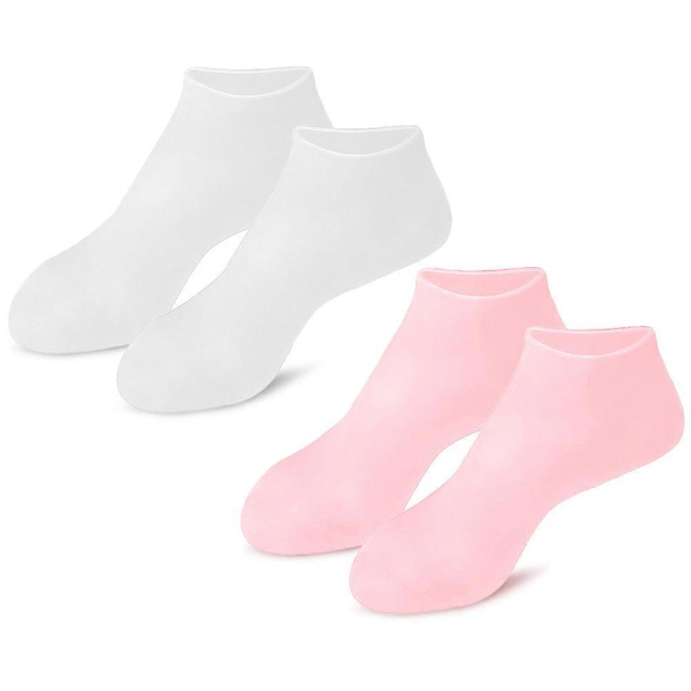 Moisturizing Repair Socks for Dry Cracked Feet Hydrating Foot Protection for Heels, Toes, and Calluses 2 Pairs White & Pink