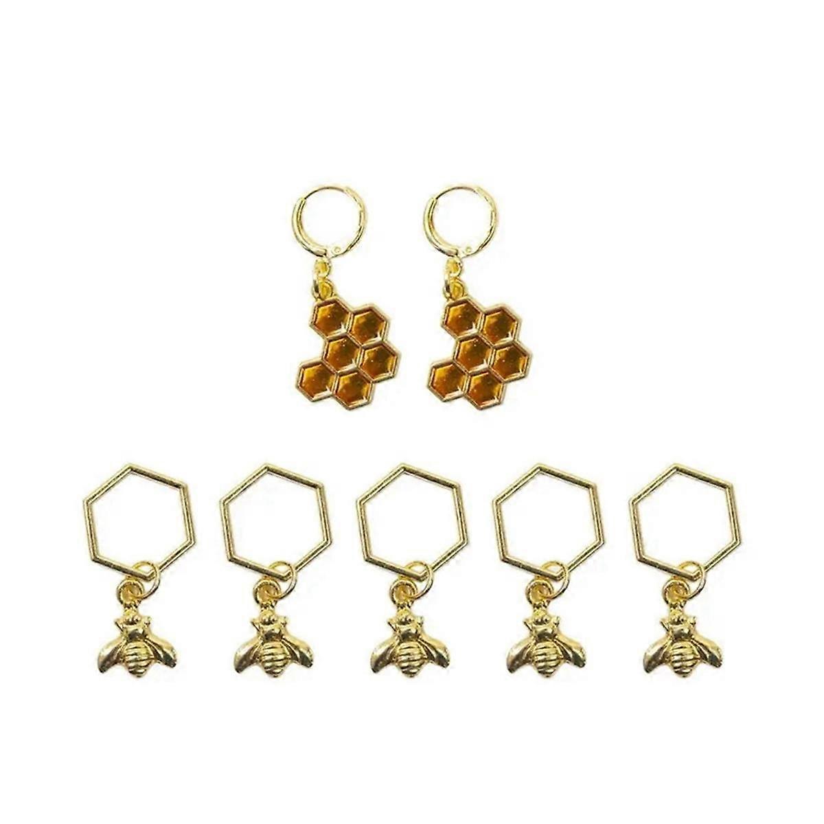 Hexagon Bee Pendants Knitting Markers Gold Color Crochet Locking Needle Clip Knitting Tools Sewing Supplies,D