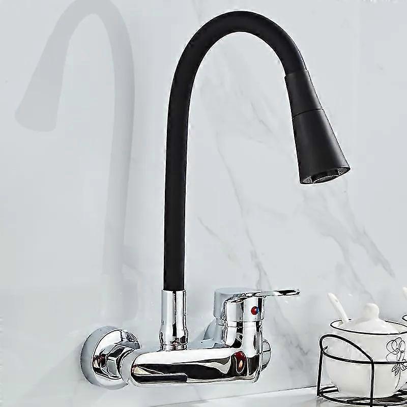 Exquisite Wall Mounted Kitchen Faucet Wall Kitchen Mixers Kitchen Sink Tap 360 Degree Free Swivel Flexible Hose Double Holes