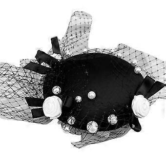 Εξαίσιο καπέλο τσαγιού Γαλλικά γάντια καπέλου Fascinators με καπέλο Flower Pillbox για κοκτέιλ πάρτι Δραστηριότητες ημέρας διαγωνισμού Μαύρο καπέλο