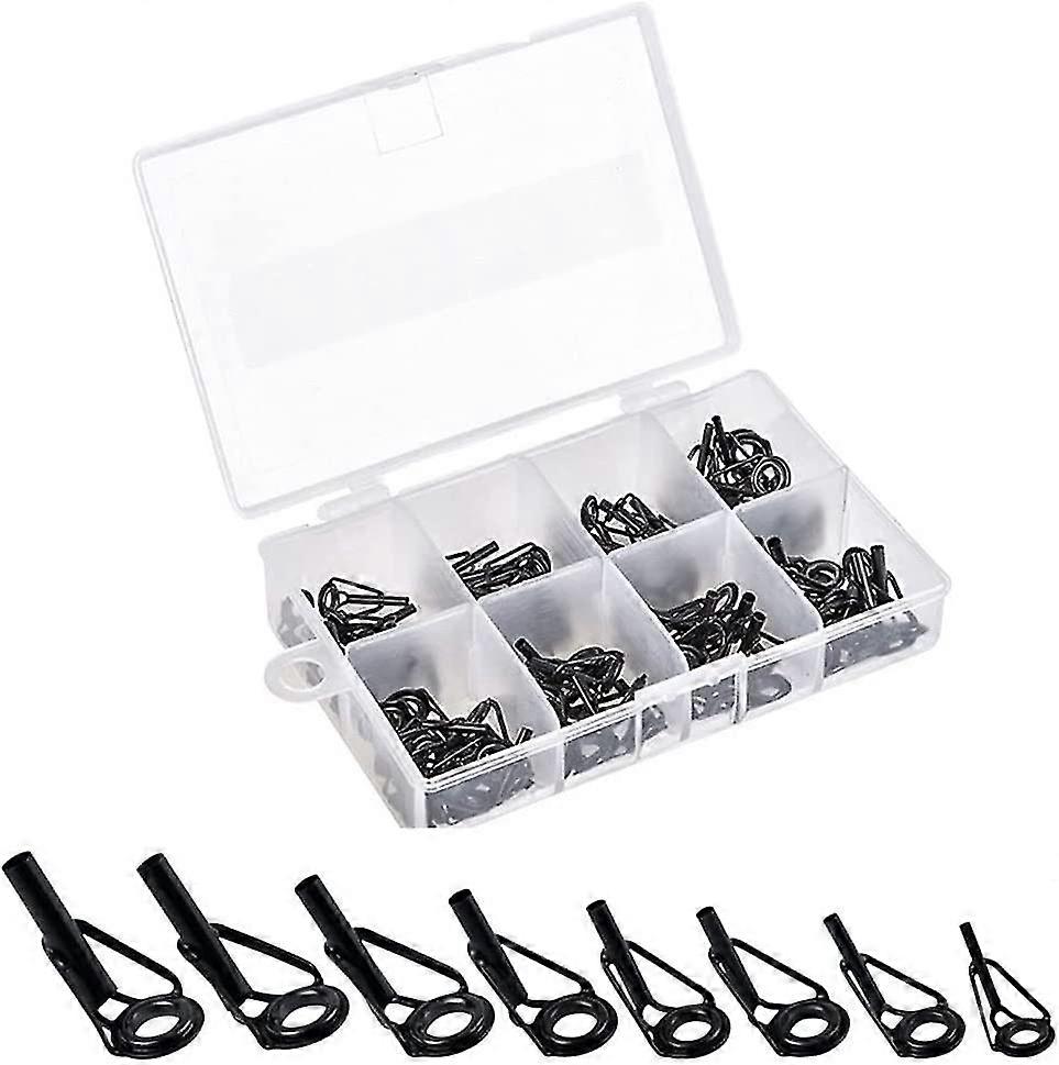 Fishing Rod Repair Kit Ceramic Ring Stainless Steel 8sizes Fishing Rod Tip Repair Kit(1set, Black)