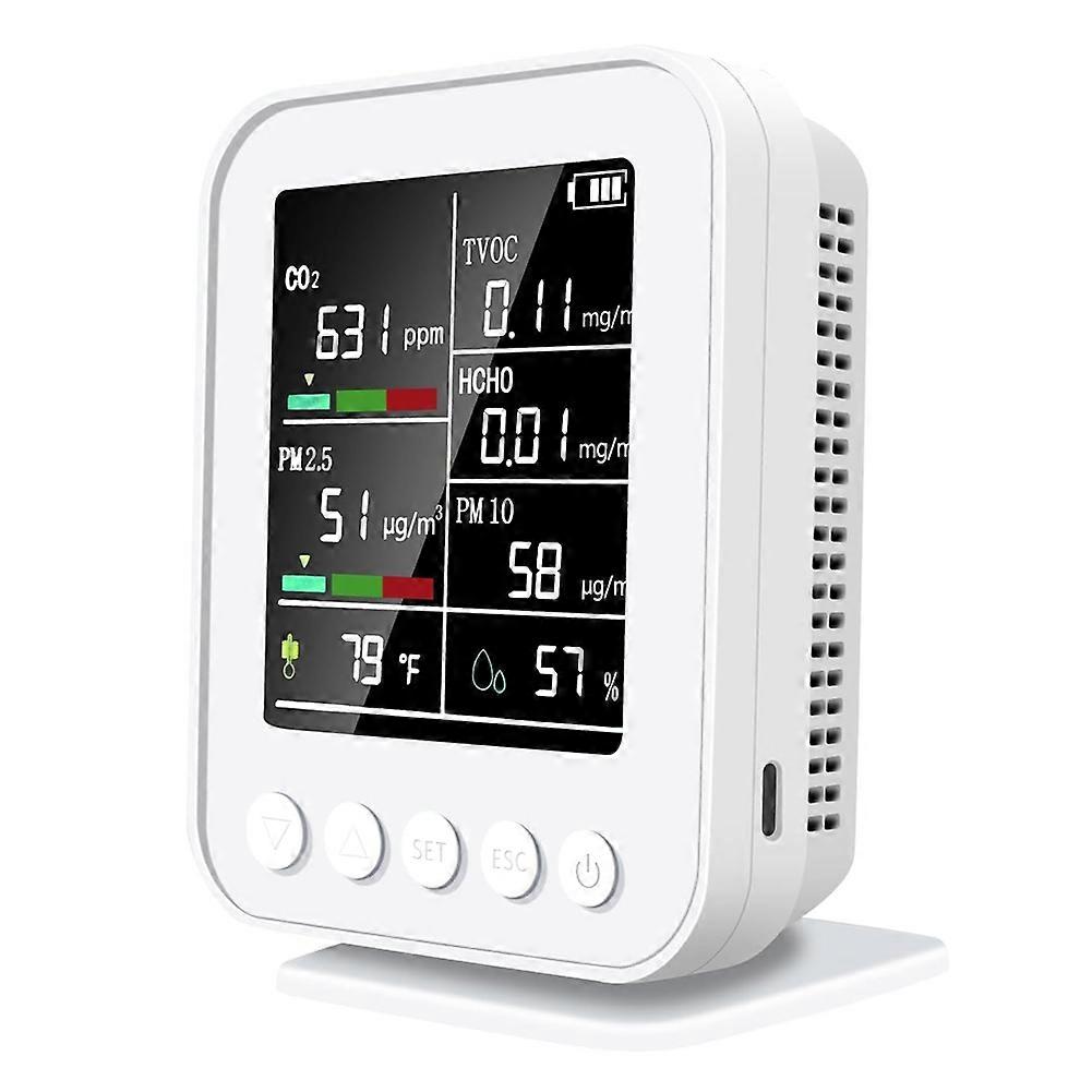 Smart 7 in 1 Air Quality Monitor with PM2.5, CO2 Detector with Alarm, Temperature & Humidity Sensors, LED Display
