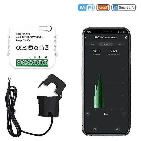 Smart Energy Switch Mete Wifi Energy Meter Tuya Smart Life 80A With Current Transformer Clamp Kw..