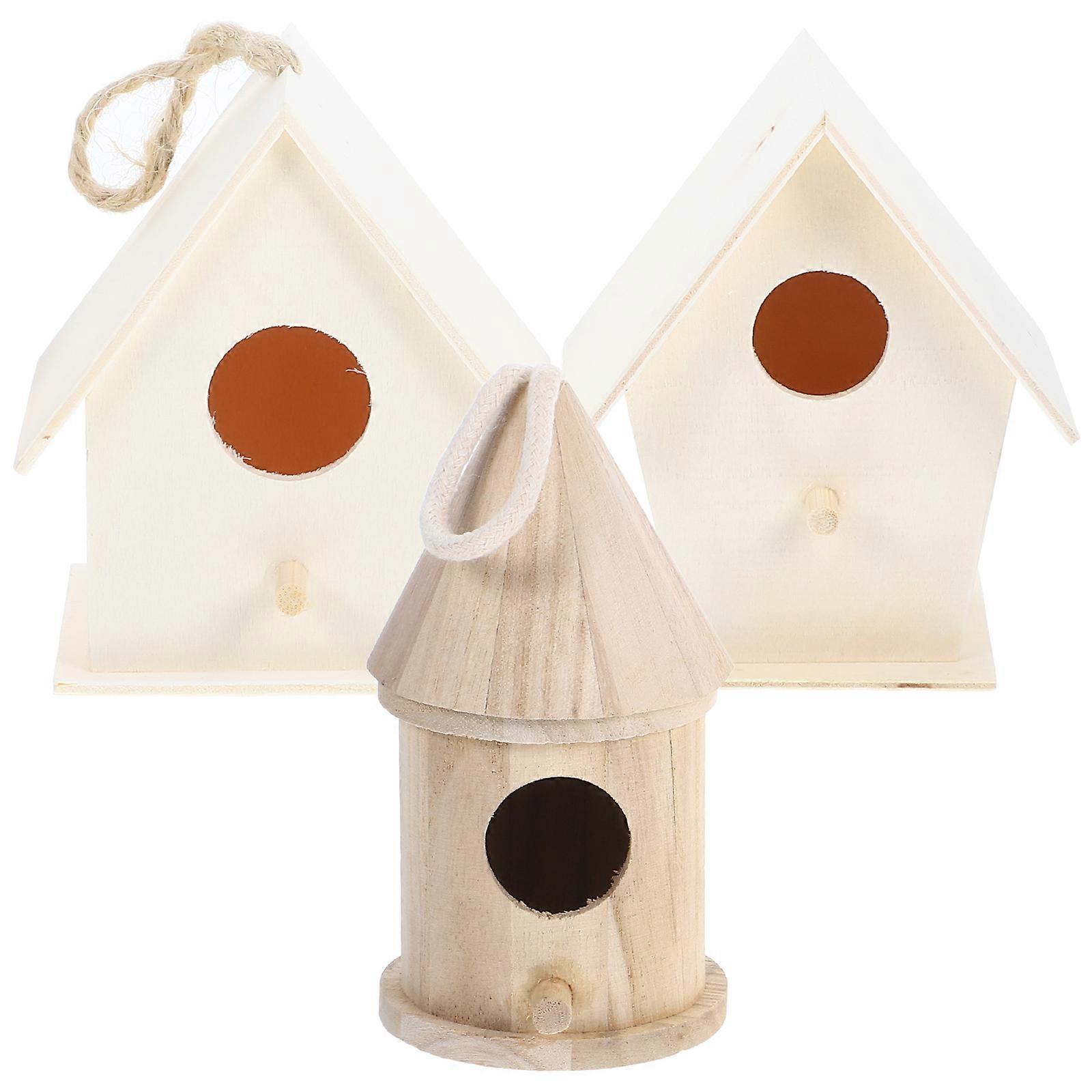 Outdoor Patio Decor Bird Sleeping Bed Rustic Style Wooden Hut for Garden and Home Adornment 3Pcs