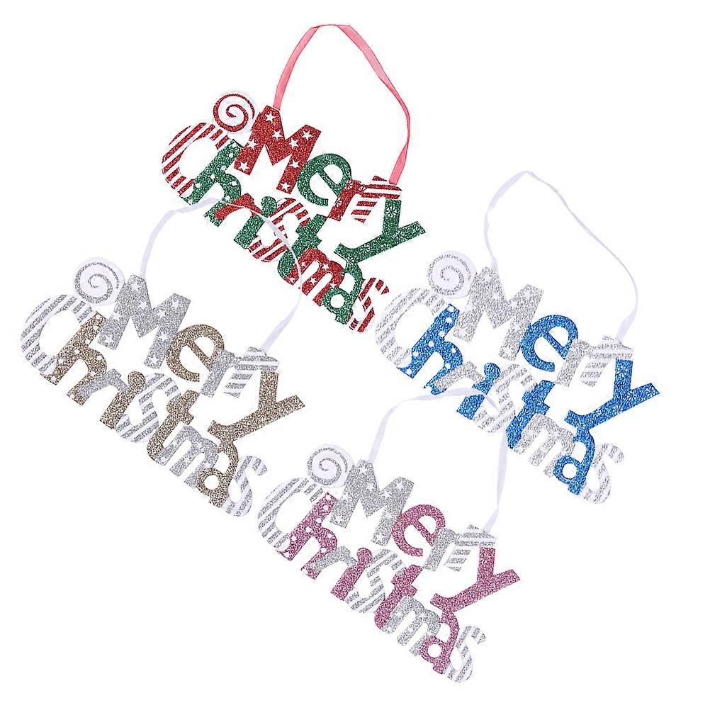 Festive Hanging Decorations Glitter Letter Design Wreath Sign Christmas Home Mural Ornaments 20x10.5cm Plastic Decoration 4Pcs