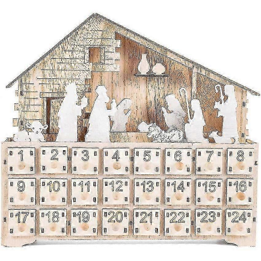 Festive Jesus Birth Calendar Box Ornament with Lights for Christmas Decor