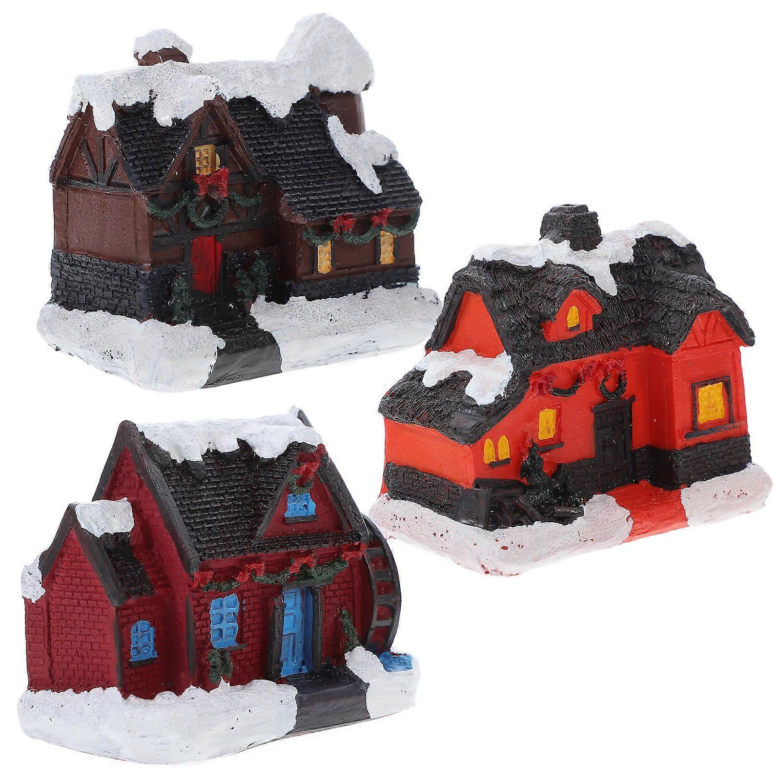 Festive Mini House Shaped Ornament For Christmas Party Home Decoration 3Pcs