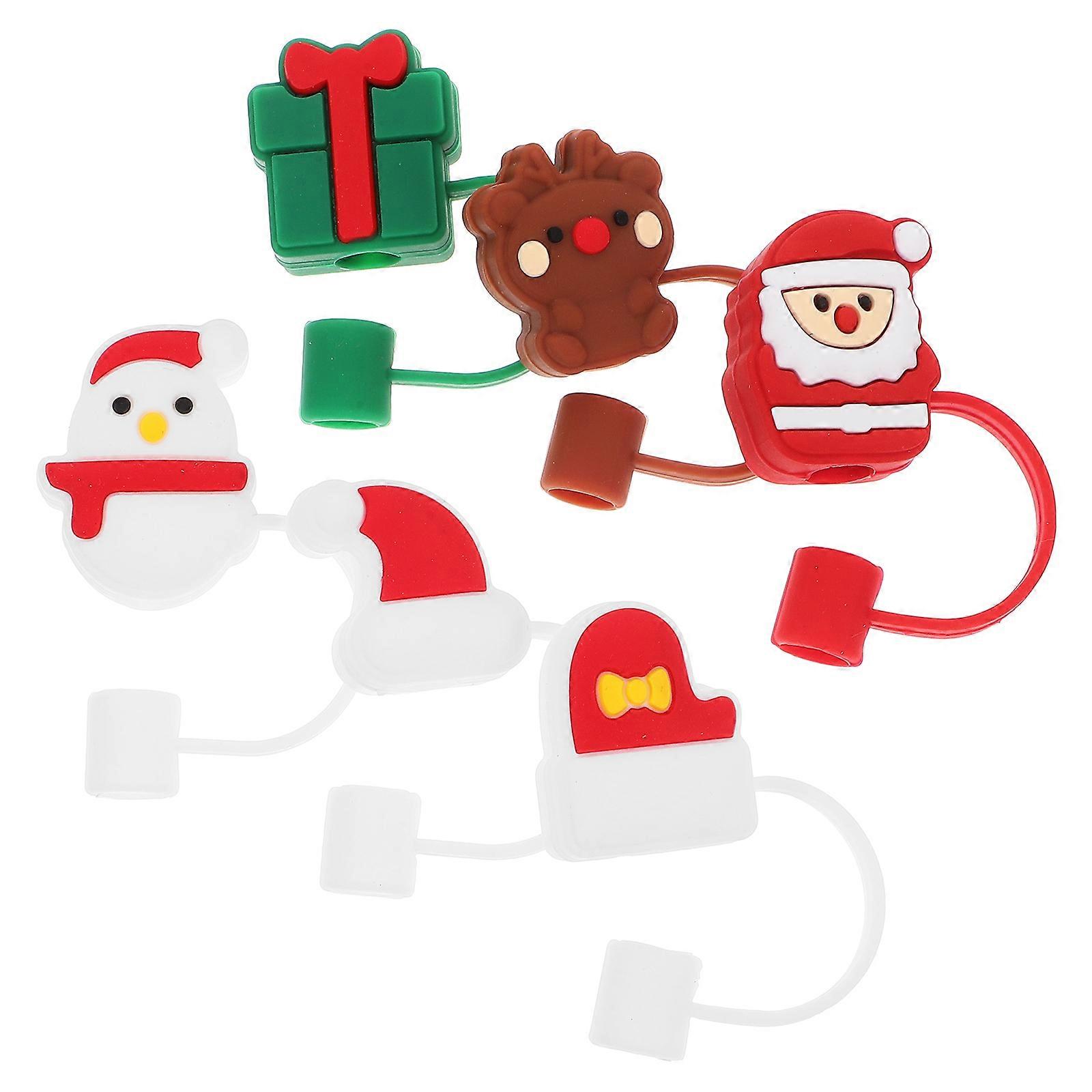 Festive Christmas Straw Toppers Santa Hat Design For Milk Tea Beverage Mugs 6Pcs