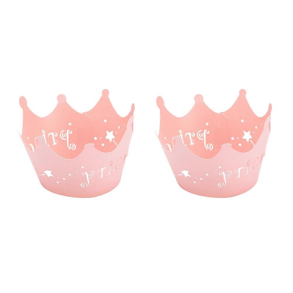 Festive Cupcake Liners Pink Paper Lace Wrappers Crown Design For Engagement Christening 24Set