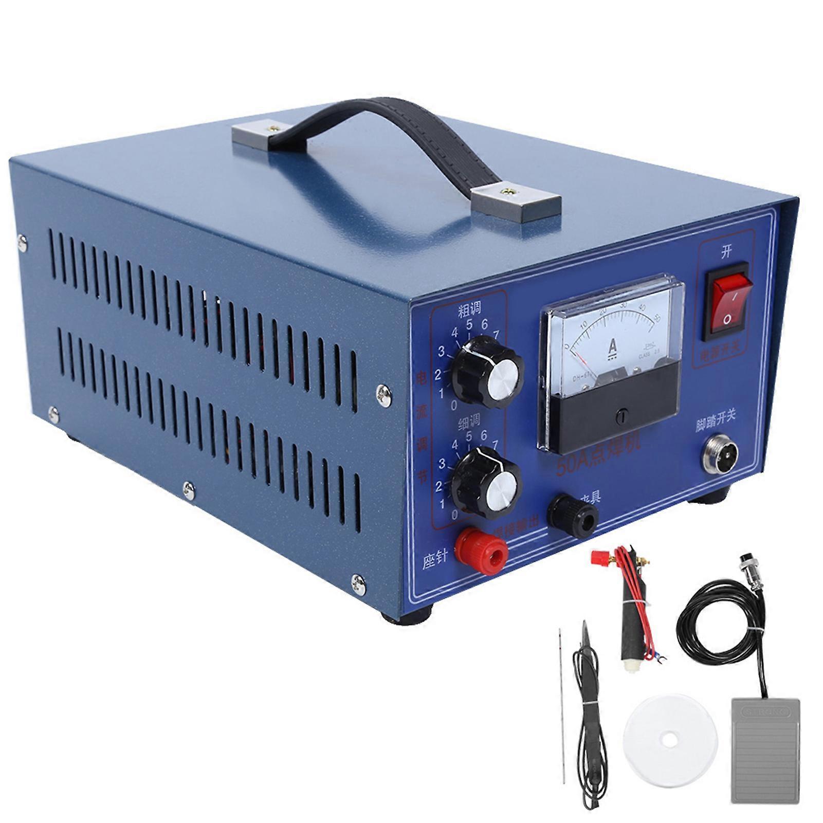 Jewelry Spot Welding Machine Professional Jewelry Spot Welder for Necklace BraceletUK Plug 220V Condition: Item Type: Spot Welding Machine Material: Metal Uses: Spot welding machine can be used for rapid welding of platinum, gold, k gold, silver, precision welding of ring mouth, buckle, thin wire, direct welding without solder powder. Welding Range: 0.6—1.2MM Power: 300W Welding Current: 0.5A-50A 50A Soldering Machine Usage: 2. When working, use the clamp on the output black line to clamp the workpiece, close to the tungsten needle. The distance depends on the size and shape of the workpiece. Generally, the distance between the tungsten needle and the workpiece is between 0.5-1 mm. After setting the welding position, click When the foot switch is activated, a high-temperature arc is generated between the workpiece and the tungsten needle to instantly weld the workpiece. 3. The discharge end of the tungsten needle must be keep sharping before and during use to keep it in a good discharge state. In welding, the output pulse current can be changed according to the size of the workpiece, the size of the solder joint, and the process requirements to achieve the desired effect. When the potentiometer is turned clockwise (coarse adjustment, fine adjustment), the output pulse current increases, otherwise the output pulse current decreases. Installment and debugging: 1. The electrode is connected to the negative output and the electrode holder is connected to the positive output. 2. The tungsten needle can be ground on a grinder and can be operated according to the principle of tip discharge. 3. The diameter of the tungsten needle is 1.5mm. Step: 1. Turn on the switch. 2. Adjust the power knob, divided into coarse adjustment and fine adjustment. The scale value can be adjusted arbitrarily according to work requirements. 3. Clamp the workpiece with tweezers, and the workpiece interface is aligned with the tungsten pin (the distance is 5mm). The workpiece cannot be touched. 4. Depress the foot switch with your foot and remove the foot. Precautions: 1. Do not step on the foot switch for a long time. If you step on it, the machine will short-circuit and the internal circuit will be burned. 2. The flash is harmful to eyes, so protective measures should be taken when using it. 3. When stepping on the foot switch, do not touches the tungsten needle and the metal part of the tweezers at the same time, otherwise there will be a needle feel.Size: Approx. 300 x 220 x 150mm / 11.8 x 8.7 x 5.9in