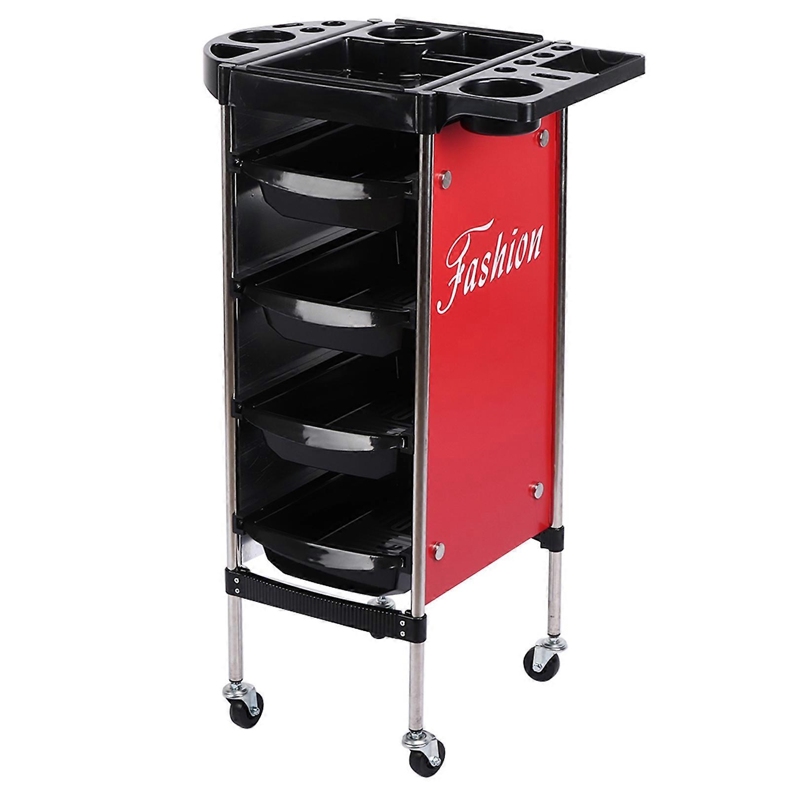 Professional Multi Functional Hair Salon Tool Storage Cart Trolley with Universal Wheels (Red)