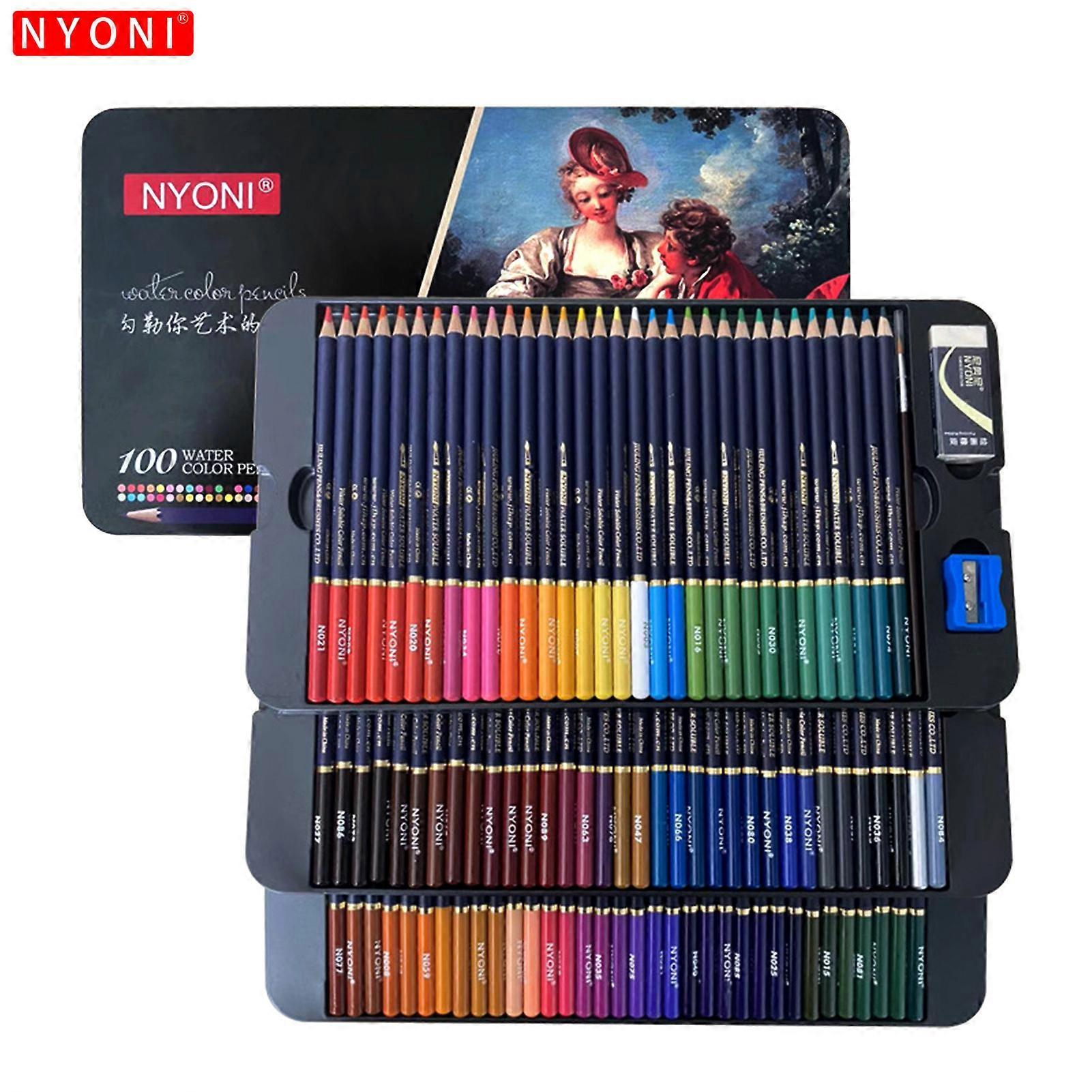 Professional Watercolor Pencils Set 12 24 36 48 72 100 Water Soluble Colored Pencils with Brush and Metal Box for Drawing Sketching Painting