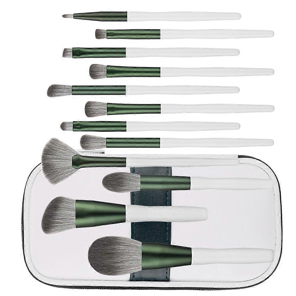 Professional Makeup Brush Set with Green Wooden Handle for Daily Use 12pcs