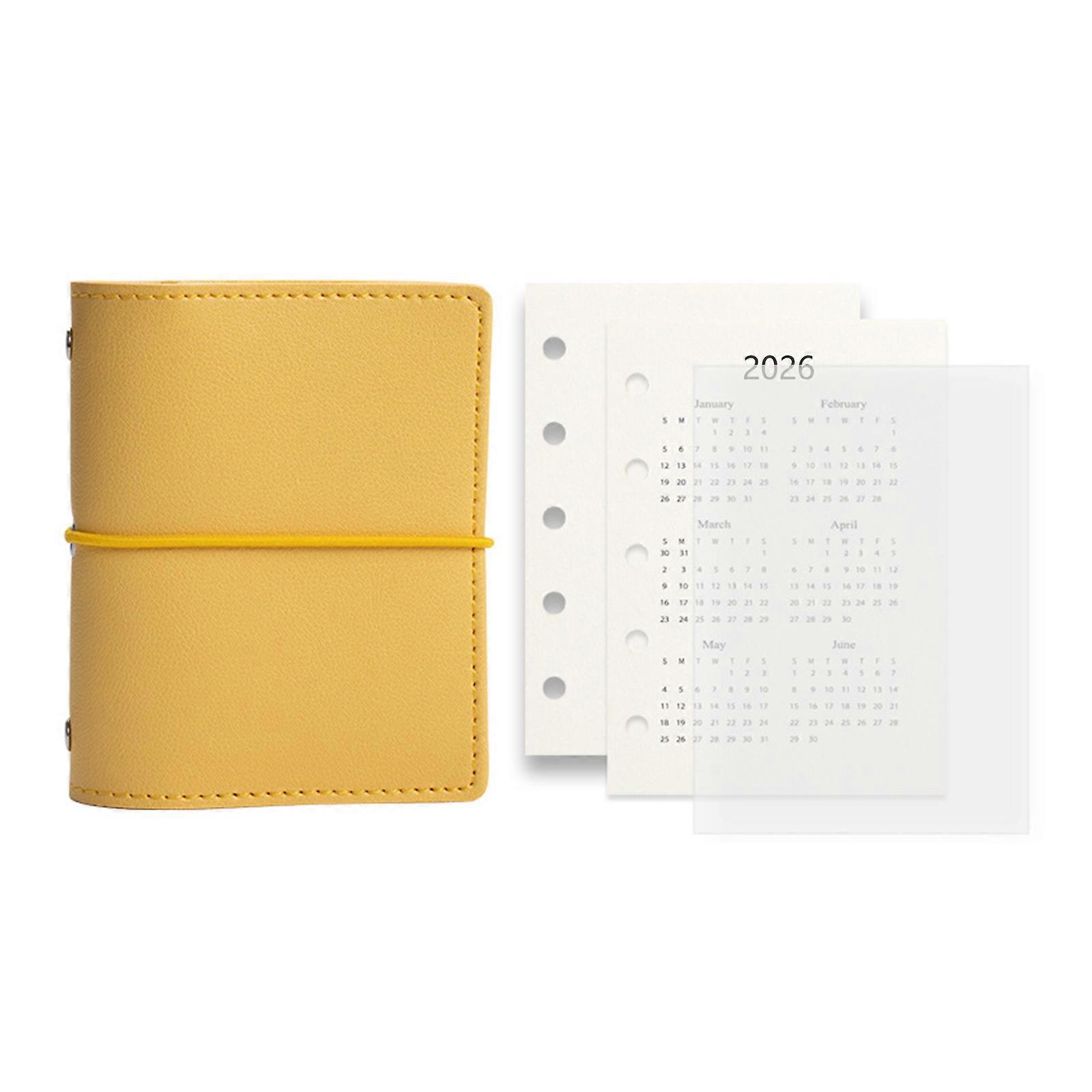 Refillable Leather 5 Rings Binder Notebook with Refill Paper 5 Holes Binder Planner 12.3x9.8CM Leather Binder Covers Yellow