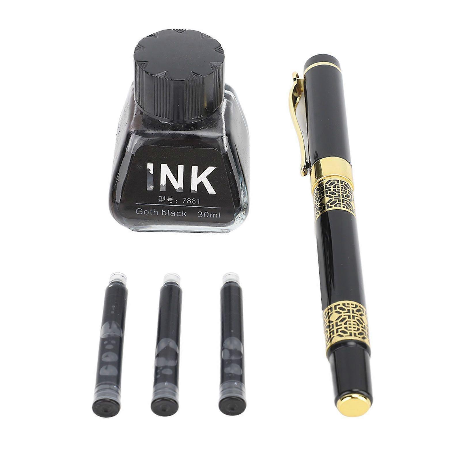 Refillable Fountain Pen Calligraphy Pen Ink Pen with 3pcs Black Ink Cartridge for Writing Office